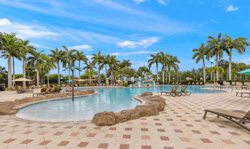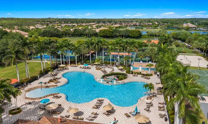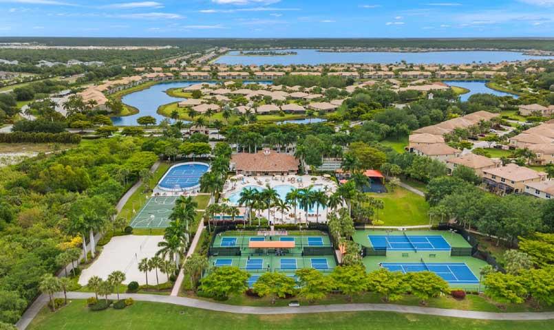 The centerpiece of Bella Terra is its 7,000-square-foot clubhouse, where residents gather for fitness, recreation, and community events. Amenities include a resort-style pool with spa and waterfall, tennis and pickleball courts, bocce, basketball, and multi-use sports fields. Families appreciate the playgrounds, inline skating rink, beach volleyball, and even a butterfly garden. With sidewalks throughout the community and abundant green space, Bella Terra encourages an active outdoor lifestyle. Its blend of natural preserves and well-planned amenities makes it a unique community in Southwest Florida.