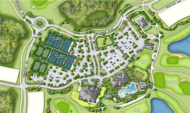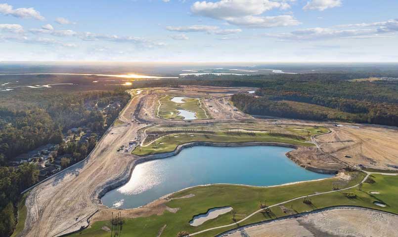 At the heart of the community is an impressive collection of resort-style amenities designed to promote connection, wellness, and recreation. Residents will enjoy a signature Culinary Center with multiple dining venues, a full-service spa and wellness center, tennis and pickleball courts, walking trails, and a kayak launch along the St. Marys River. The centerpiece is an 18-hole championship golf course designed by C.W. Golf Architecture, complemented by an aqua driving range, pro shop, and practice facilities. A dedicated lifestyle director coordinates social events, fitness programs, wine tastings, culinary classes, and community gatherings throughout the year.