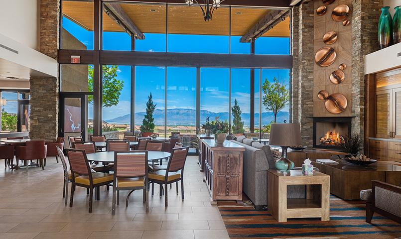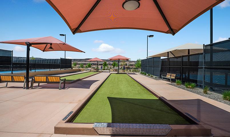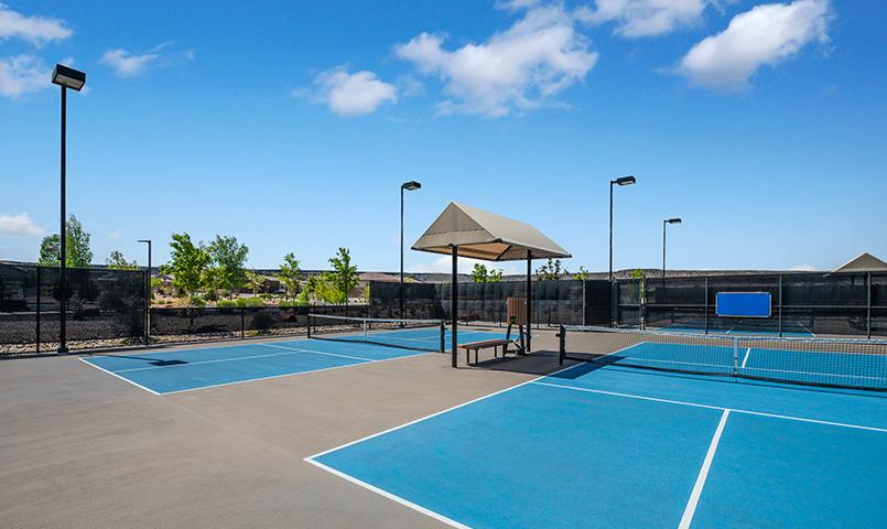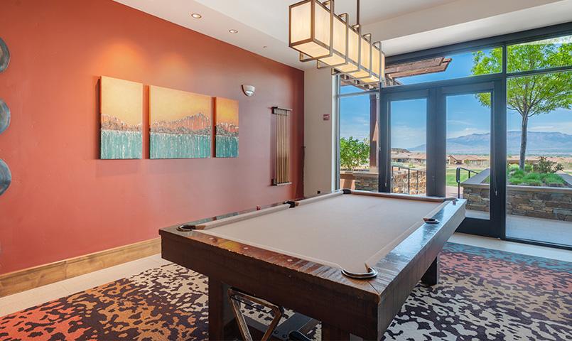 Residents of this active adult community in Albuquerque enjoy an engaging lifestyle centered around the Sandia Amenity Center. This 10,000-square-foot clubhouse features a modern fitness center, billiards room, multipurpose gathering spaces, and social areas for clubs and events. Outdoor amenities include a resort-style pool and spa, tennis courts, pickleball courts, bocce courts, and scenic walking paths. A full calendar of activities and an on-site lifestyle director help residents connect with neighbors while staying active year-round.