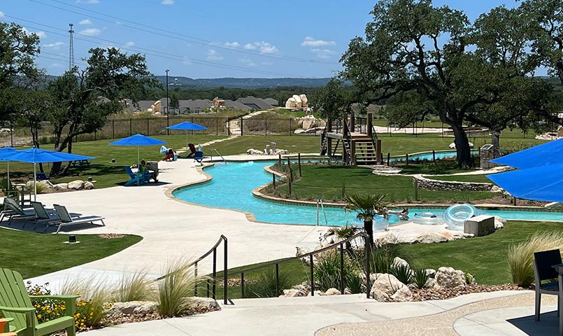 At the center of community life is an impressive collection of resort-style amenities designed for connection, recreation, and relaxation. Residents enjoy The Club at Esperanza, featuring a lazy river, resort-style pool, fitness center, and gathering spaces. Beyond the main amenity center, distinctive spaces like Roca Loca Lawn, Roca Loca Beach, and Rover Oaks Bark Parque offer engaging experiences for all ages, while over 20 miles of trails and expansive parks encourage outdoor exploration.